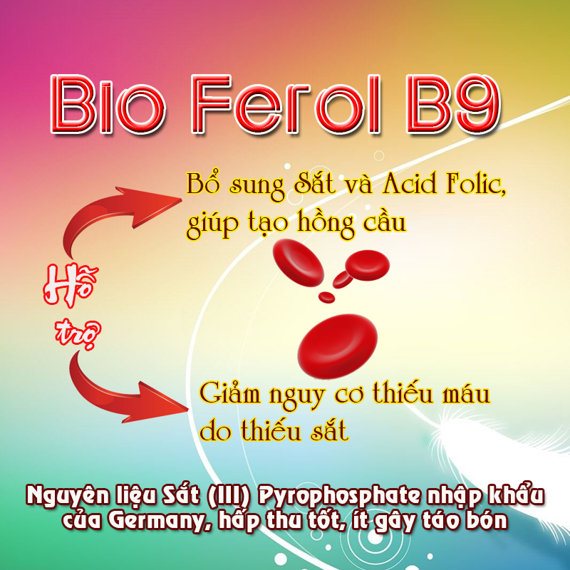 Hỗ trợ bổ sung sắt, acid folic cho cơ thể, hỗ trợ quá trình tạo hồng cầu, hỗ trợ giảm nguy cơ thiếu máu do thiếu sắt.